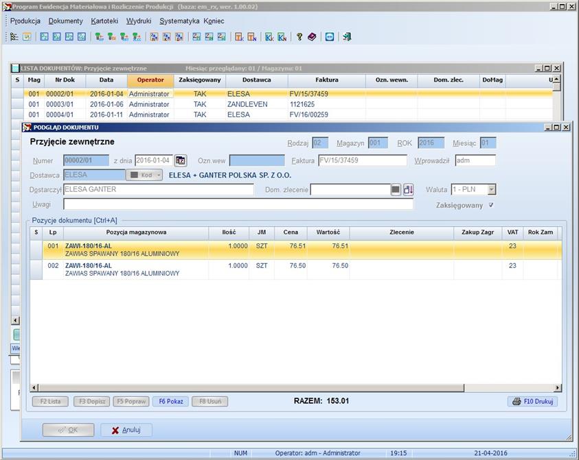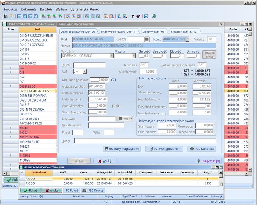 Program Ewidencja Materiałowa i Rozliczenie Produkcji "EM"