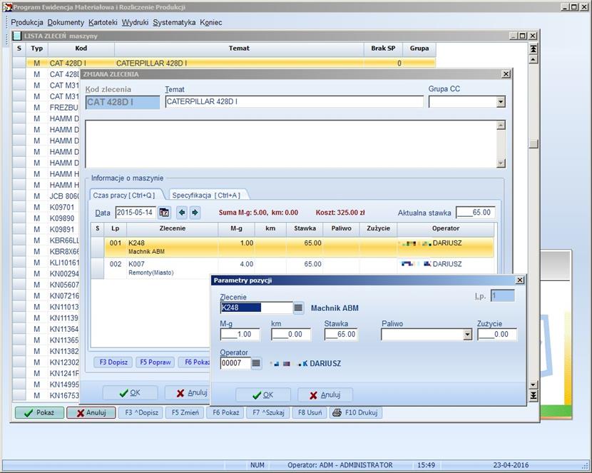 2. Dodana została obsługa czasu pracy maszyn oraz wydruk na zasadach analogicznych jak dla pracowników.