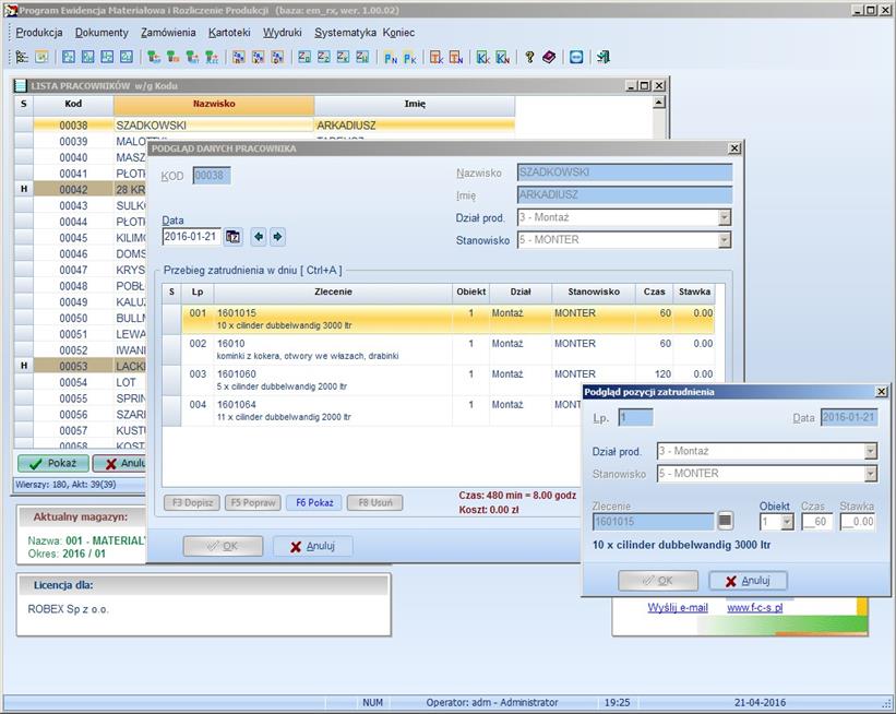 - ewidencjonowanie czasu pracy pracowników realizujących zlecenia,