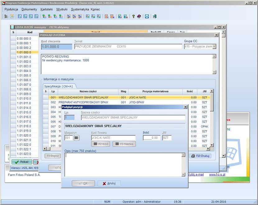 Drugą część programu stanowi moduł produkcyjny. Funkcjonalność modułu zależna jest od użytkownika programu.